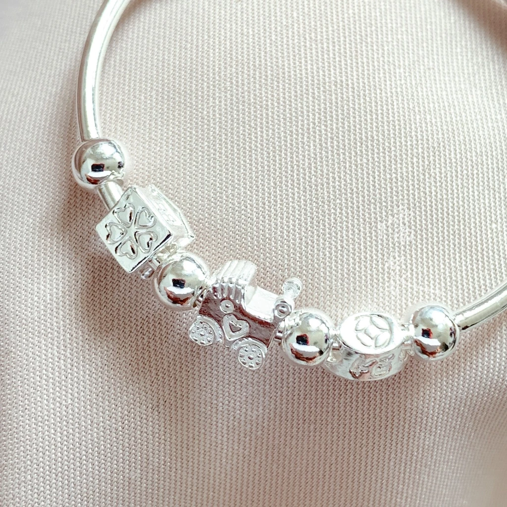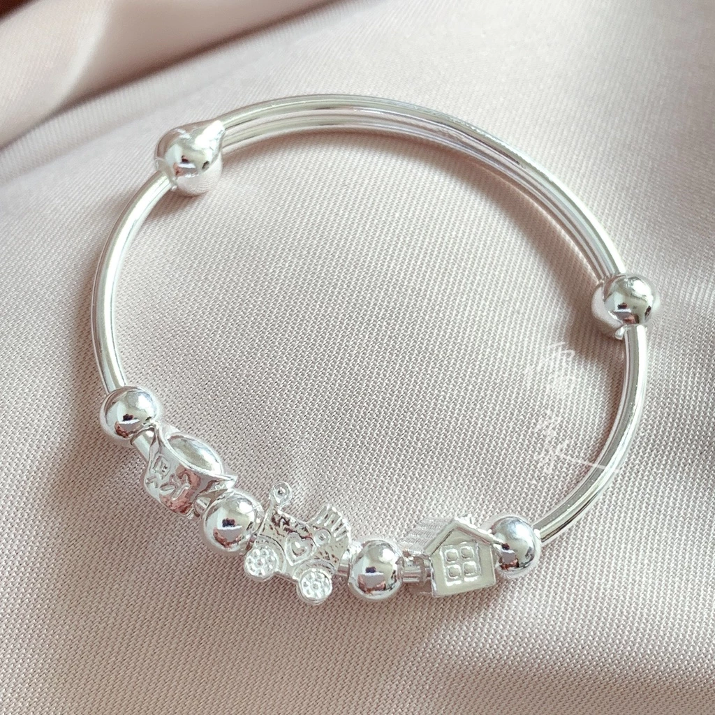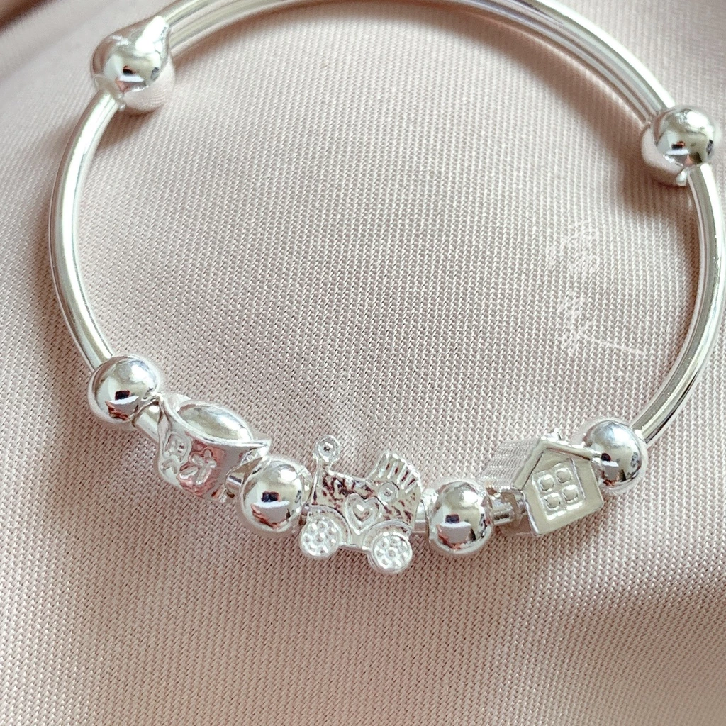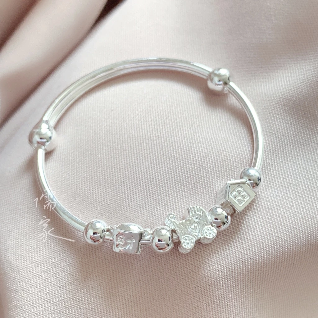 品名:純銀寶寶手鐲-有車有房有錢(單隻)